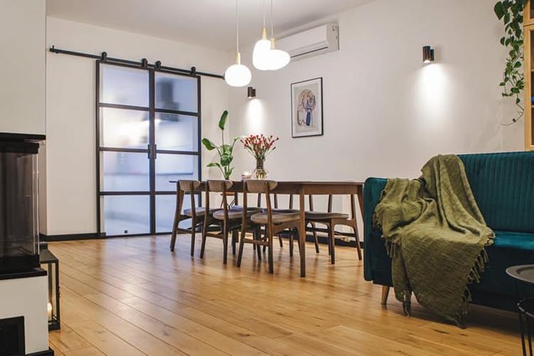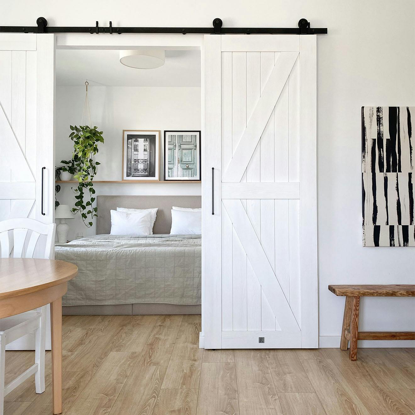 Bien qu'il puisse sembler que les doubles portes conviennent mieux aux grands intérieurs, dans les petits espaces, cette solution convient également parfaitement ! Ils fonctionneront mieux entre le salon et la chambre, en raison de leur utilisation pratique. De plus, elles feront exactement ce que les portes coulissantes sont censées faire : ajouter du caractère !