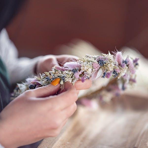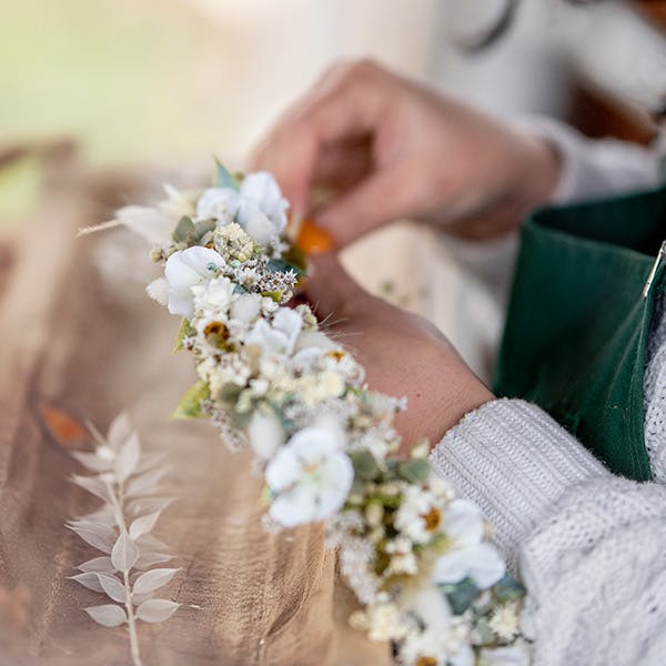 Les fleurs séchées et stabilisées sont sensibles à la lumière directe du soleil. Cela peut entraîner la perte de couleur ou l'effritement des fleurs - et nous ne voulons certainement pas cela ! Par conséquent, nous vous recommandons de placer la couronne dans un endroit où elle ne sera pas exposée à la lumière directe du soleil.