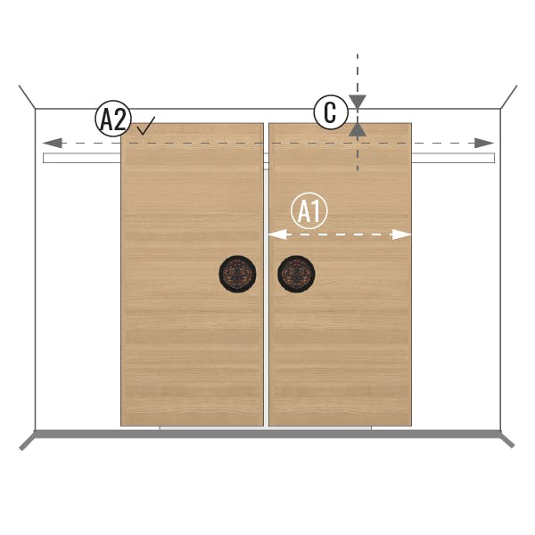 Pour les portes avec un système caché situé derrière la porte, le vantail de la porte est légèrement plus haut. Faites attention à la quantité d'espace disponible au plafond qui est nécessaire pour une installation correcte.