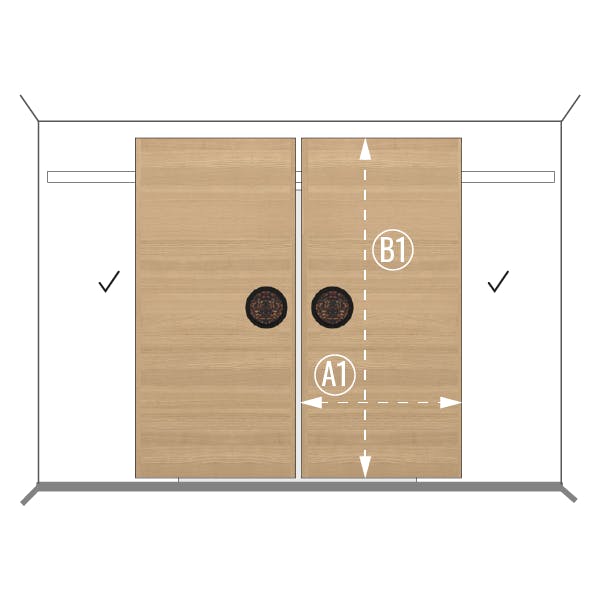 Il est important que la porte chevauche suffisamment les bords de l'ouverture de la porte. S'il n'y a pas assez de chevauchement, il y aura un espace à travers lequel vous pourrez voir ce qui se trouve derrière la porte en la regardant sous le bon angle. C'est parce que la porte coulissante est devant l'ouverture, pas à l'intérieur de l'ouverture.