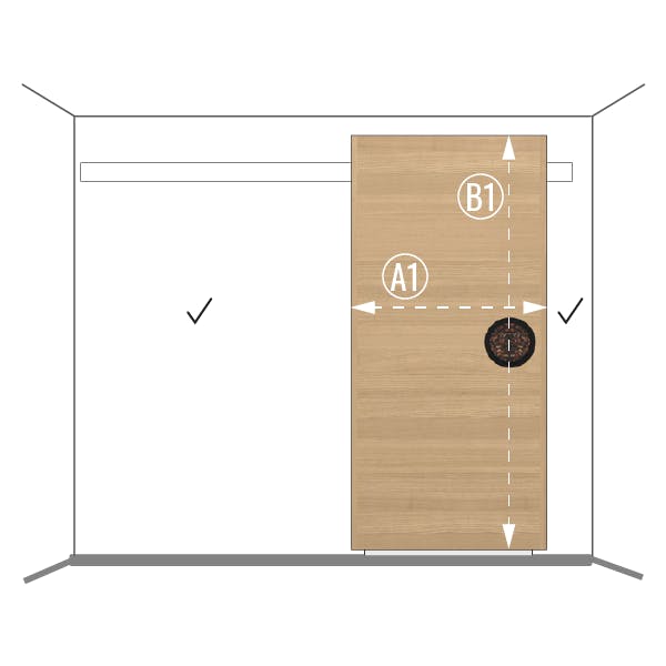 Il est important que la porte chevauche suffisamment les bords de l'ouverture de la porte. S'il n'y a pas assez de chevauchement, il y aura un espace à travers lequel vous pourrez voir ce qui se trouve derrière la porte en la regardant sous le bon angle. C'est parce que la porte coulissante est devant l'ouverture, pas à l'intérieur de l'ouverture.