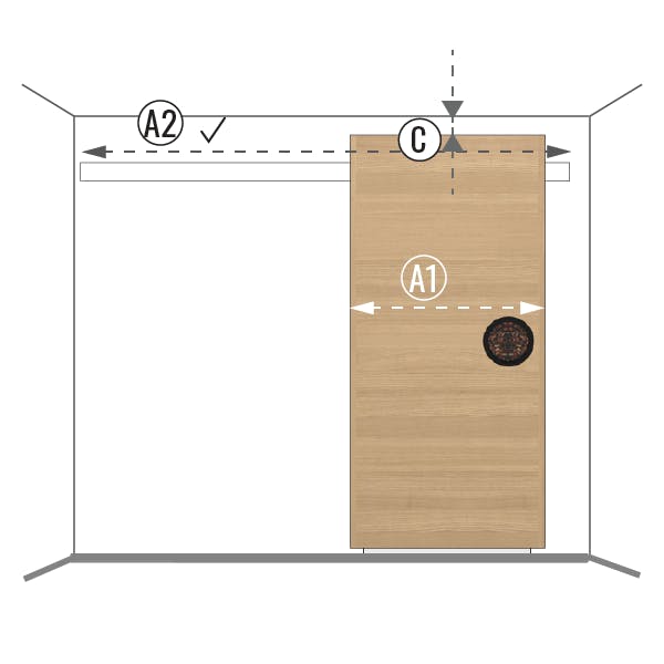 Pour les portes avec un système caché situé derrière la porte, le vantail de la porte est légèrement plus haut. Faites attention à la quantité d'espace disponible au plafond qui est nécessaire pour une installation correcte.