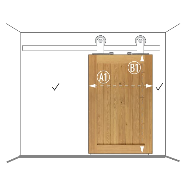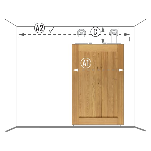 Dans le cas de portes en bois, un système coulissant approprié doit être sélectionné dans le configurateur de produit. Considérez le style de la pièce et la quantité d'espace disponible nécessaire pour une installation correcte.